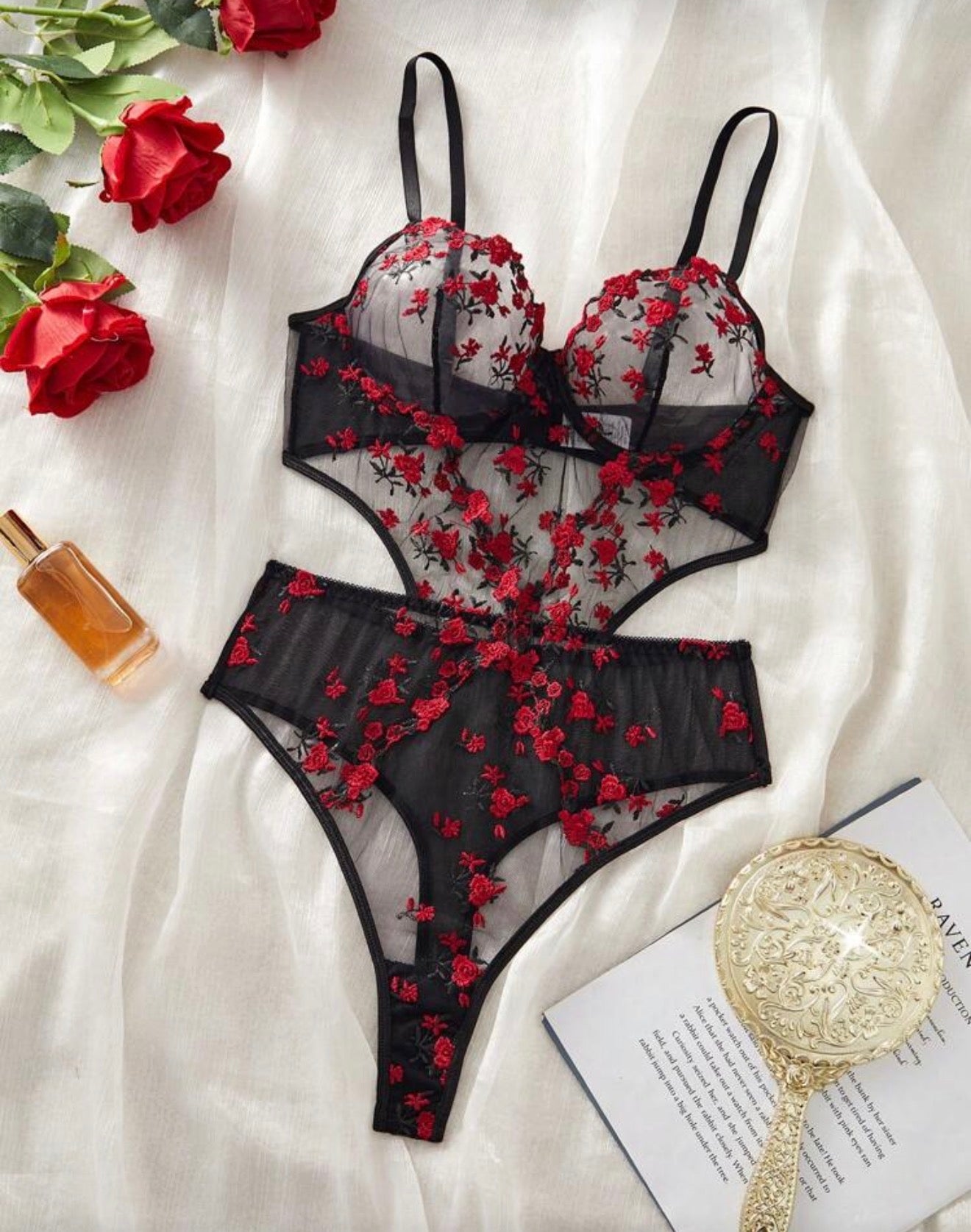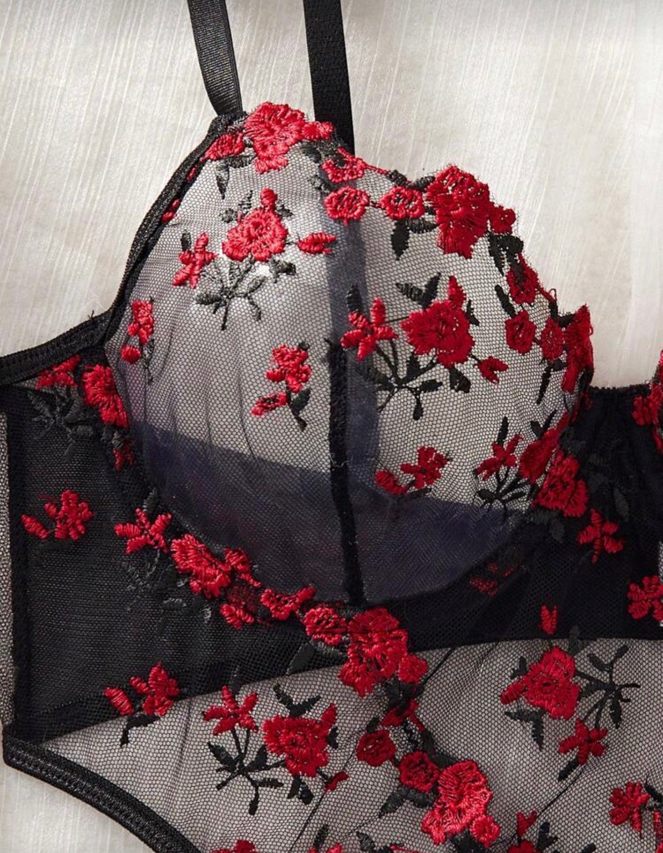 Добавете нежност и изящество към визията си с това изключително женствено боди. Фино изработено от прозрачен тюл и украсено с деликатна флорална бродерия, то подчертава формите по елегантен и съблазнителен начин.