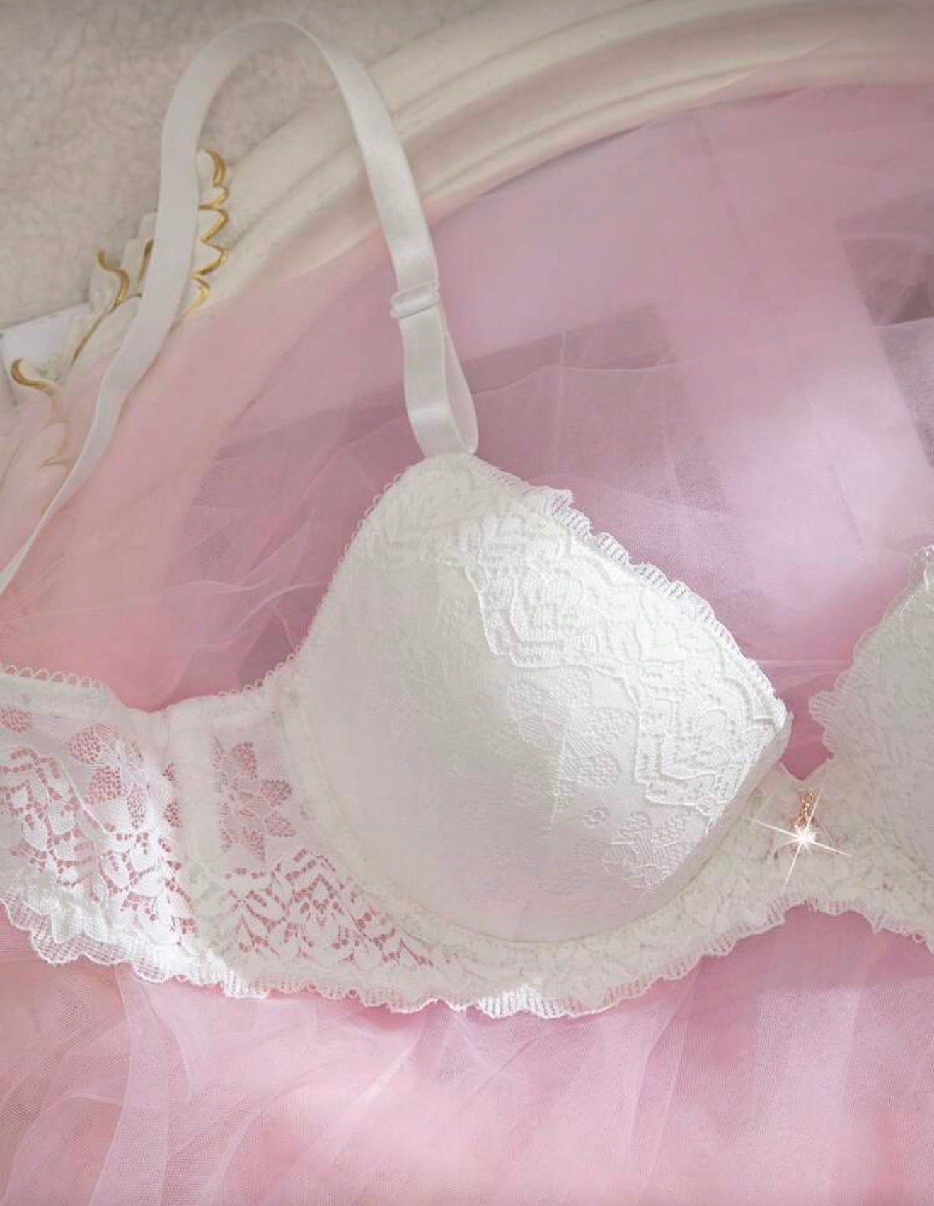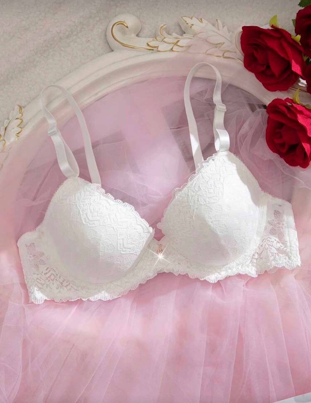 Този изискан дамски комплект в класически бял цвят съчетава нежна дантела и романтична визия. Сутиенът осигурява комфорт и красиво оформяне, а прашката допълва визията с фин и женствен стил. Перфектен избор за специални моменти или когато искаш да се почувстваш уверена и елегантна всеки ден.